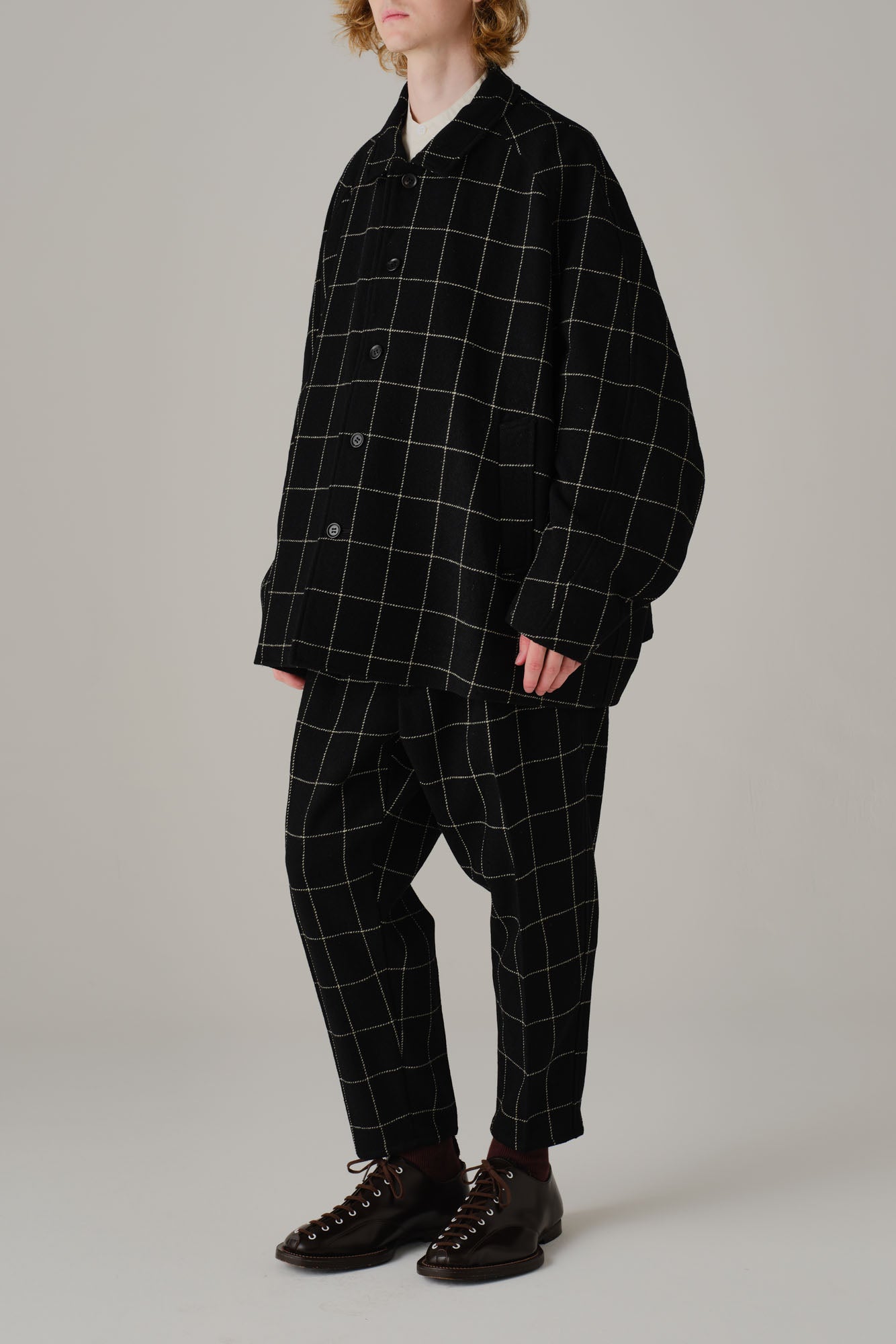 Jacket 19236- Wool100% Windowpane Tweed- Black