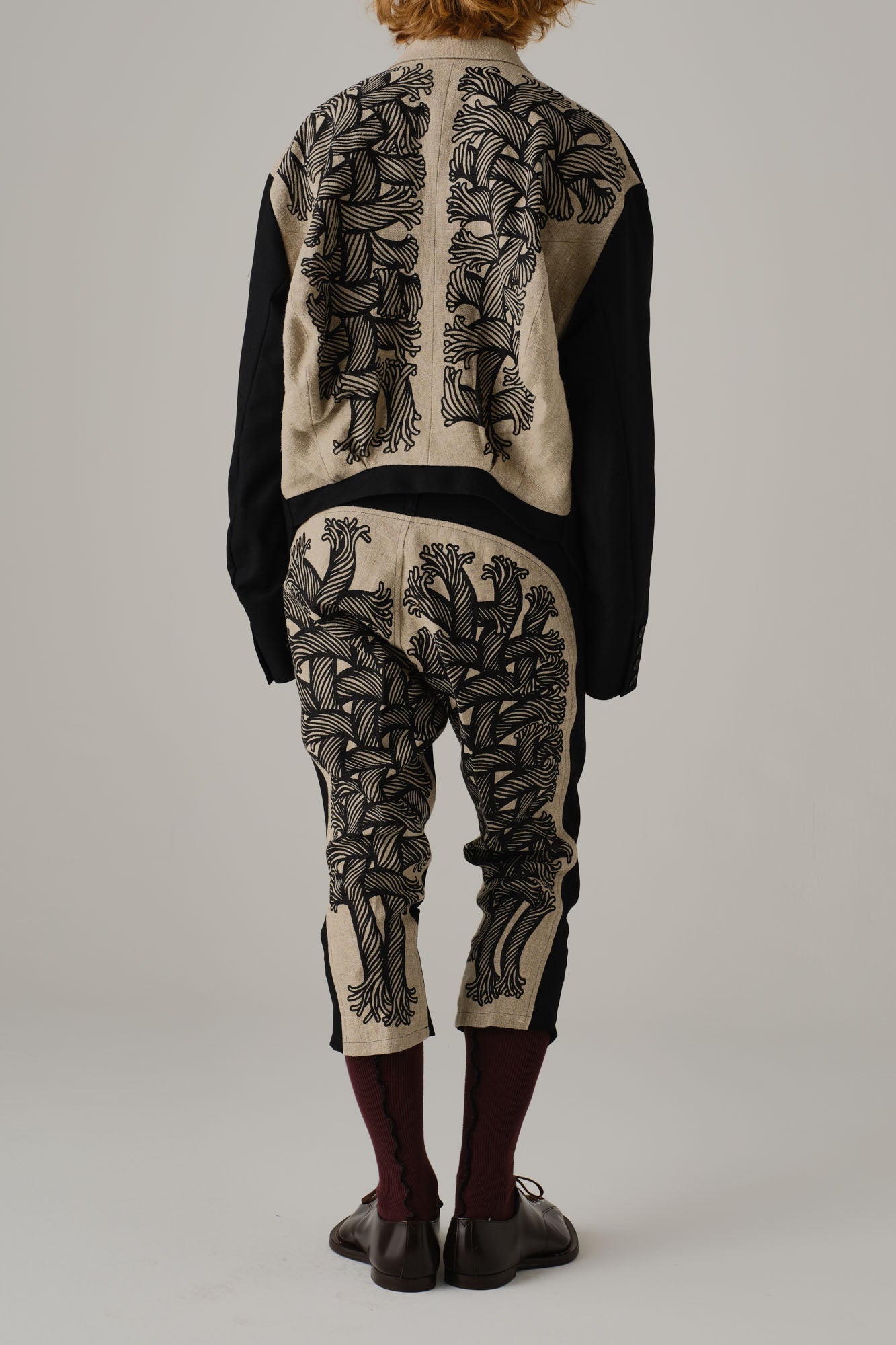Jacket 28- Mix Wool100% Army Serge/Linen100%- 28 Pattern Rope- Black/Natural