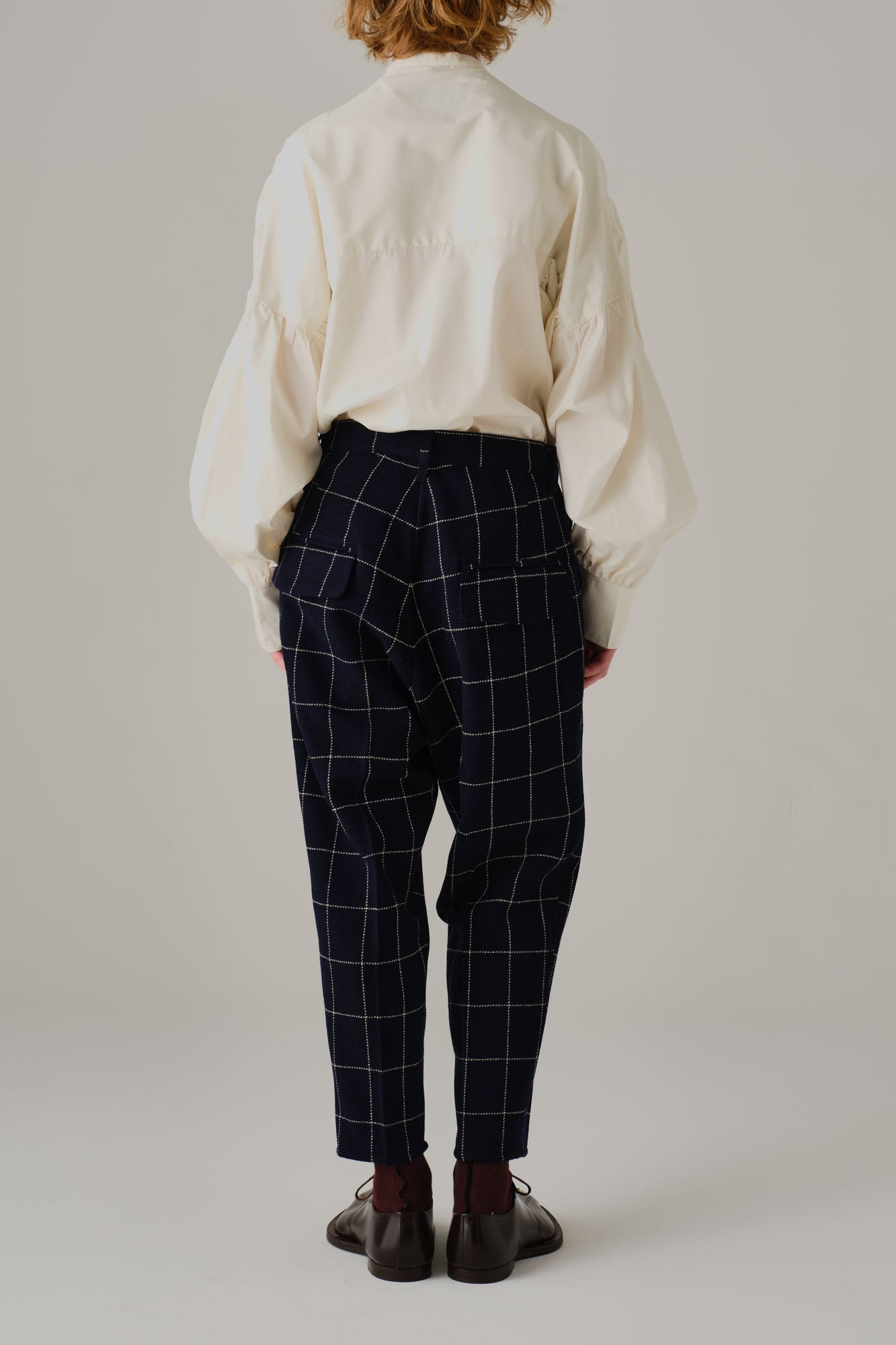 Trousers 11- Wool100% Windowpane Tweed- Navy