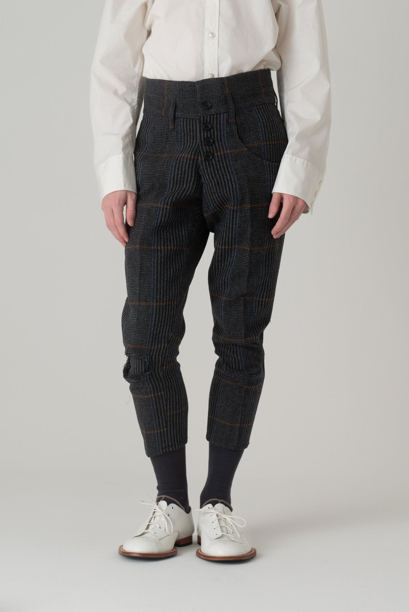 Woven in Japan with a woollen thread sourced in England, this unique glen-check is a replica of the orginial fabric used in Christopher Nemeth's 1994 collection, titled "Hard Work".