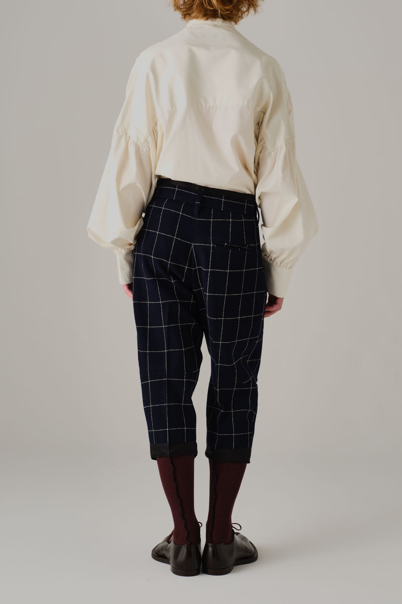 Trousers 386- Wool100% Windowpane Tweed- Navy