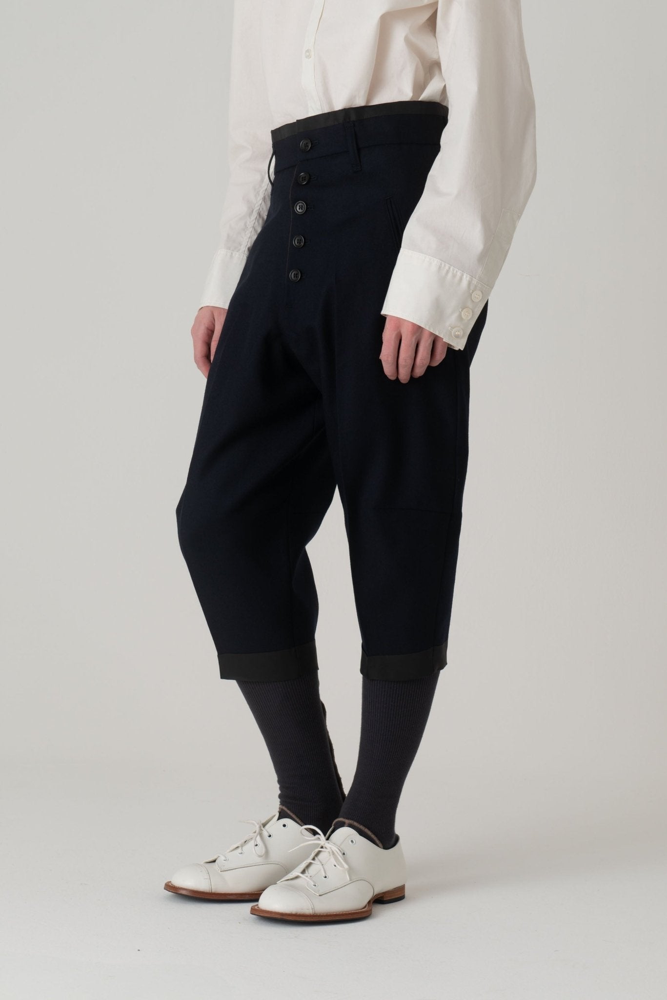 - Button-fly front closure