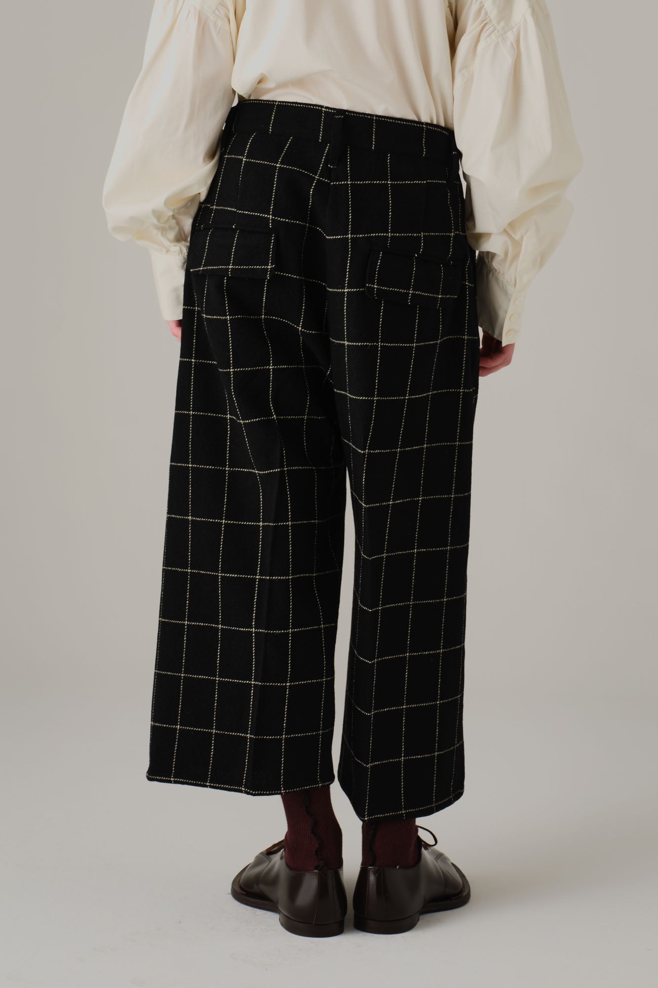Trousers 8PT- Wool100% Windowpane Tweed- Black