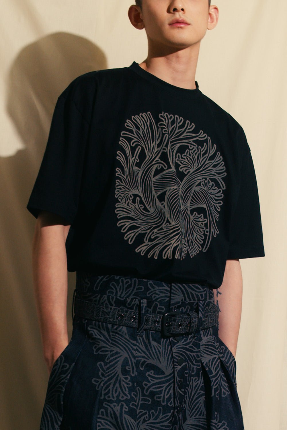 Tshirt Printed- Cotton100% Jersey- Cutout Rope- Oval- Black