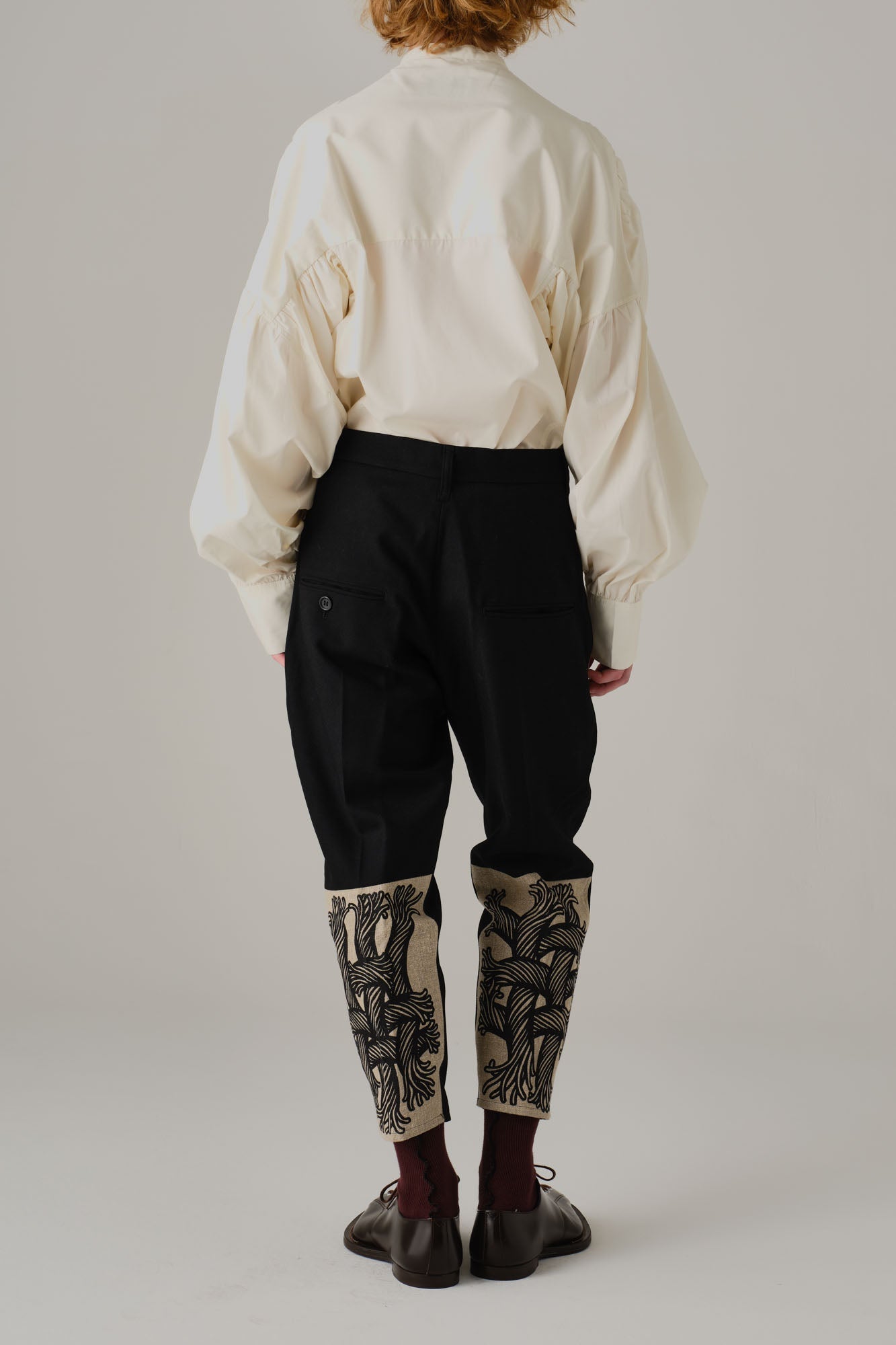 Trousers 42- Mix Wool100% Army Serge/Linen100%- 42 Pattern Rope- Black/Natural