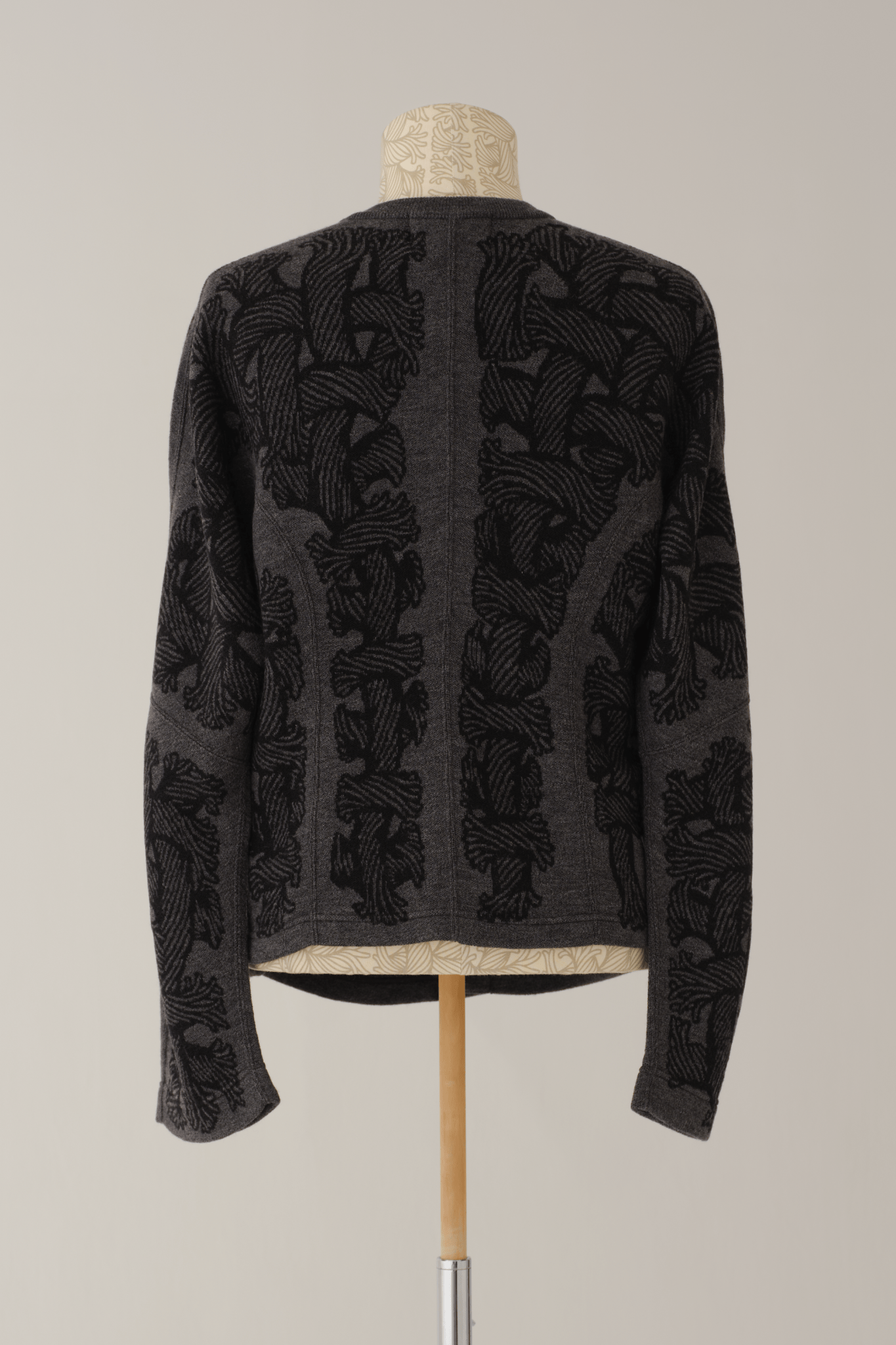 Knit Cardigan 203K- Wool100% Jacquard Knit- 203K Rope- Charcoal