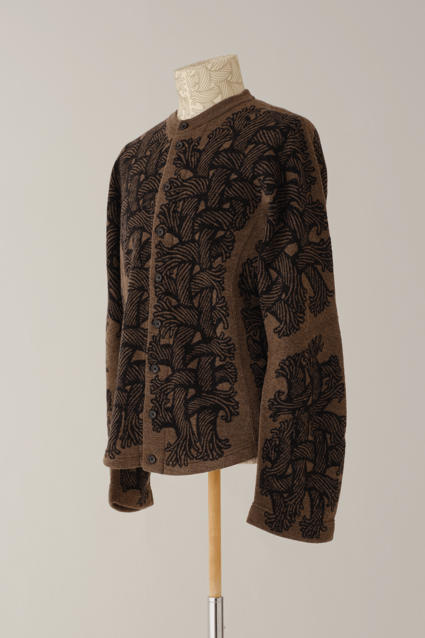 Knit Cardigan 203K- Wool100% Jacquard Knit- 203K Rope- Light Brown