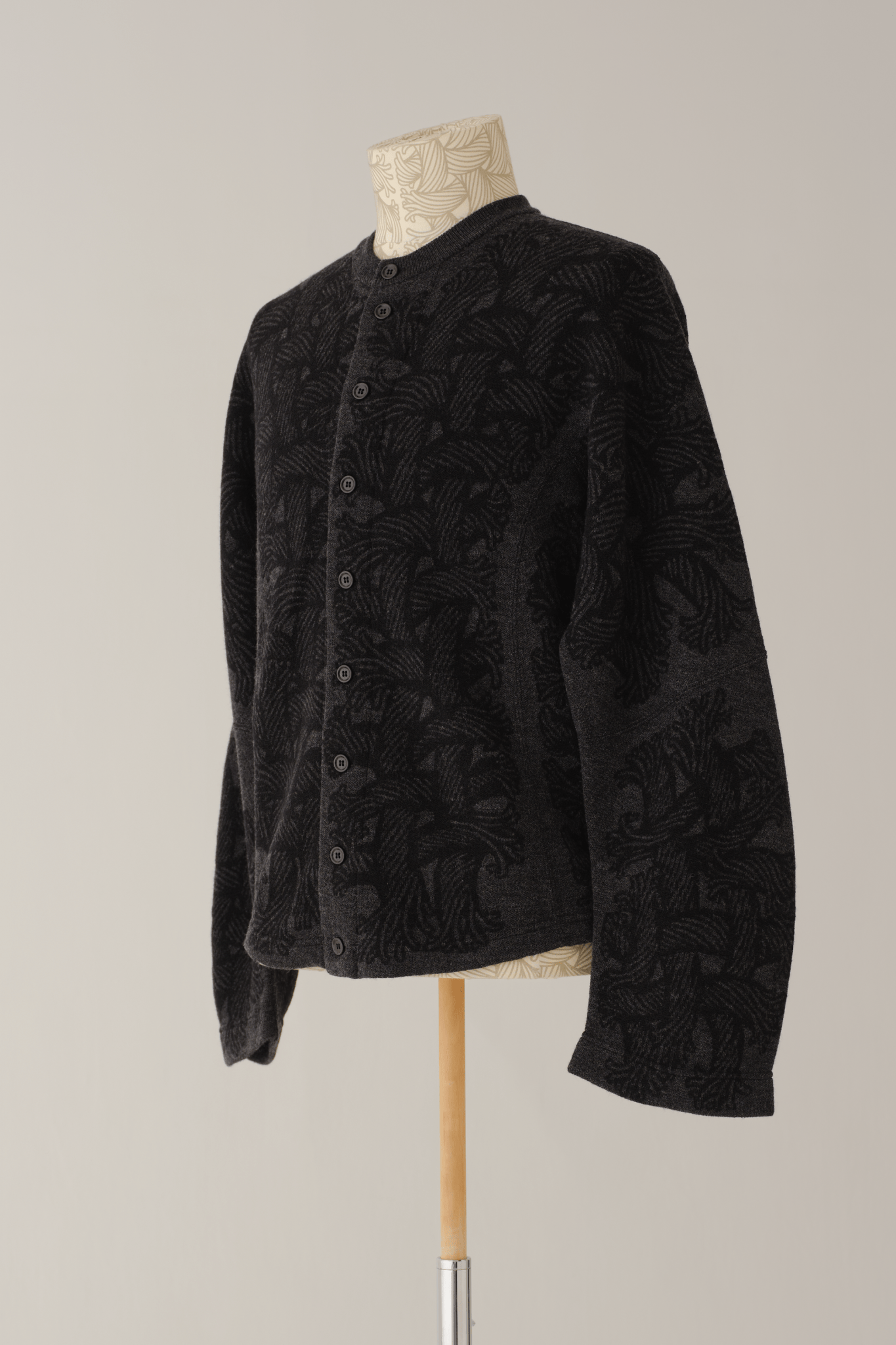 Knit Cardigan 203K- Wool100% Jacquard Knit- 203K Rope- Dark Grey