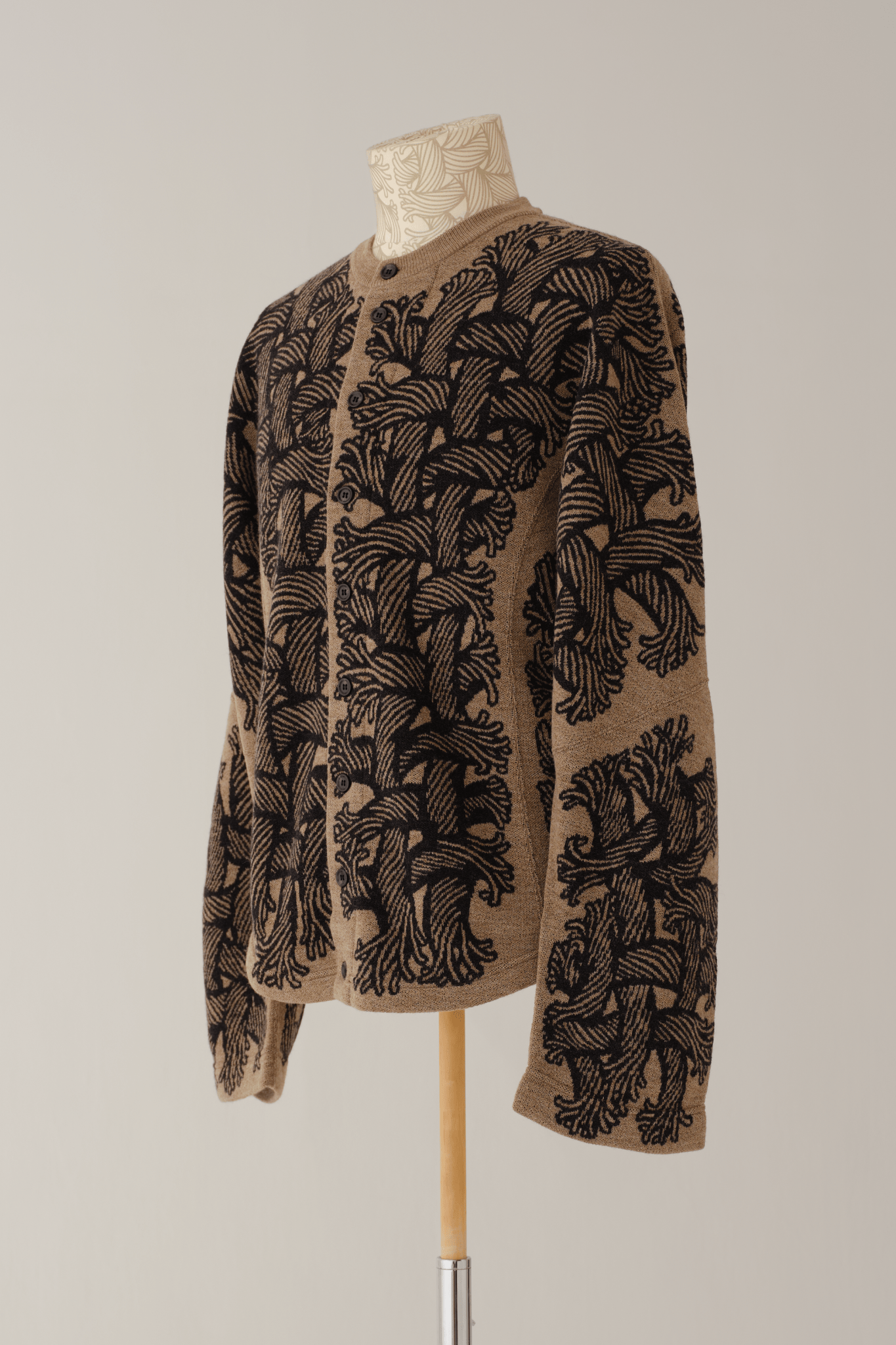 Knit Cardigan 203K- Wool100% Jacquard Knit- 203K Rope- Light Beige