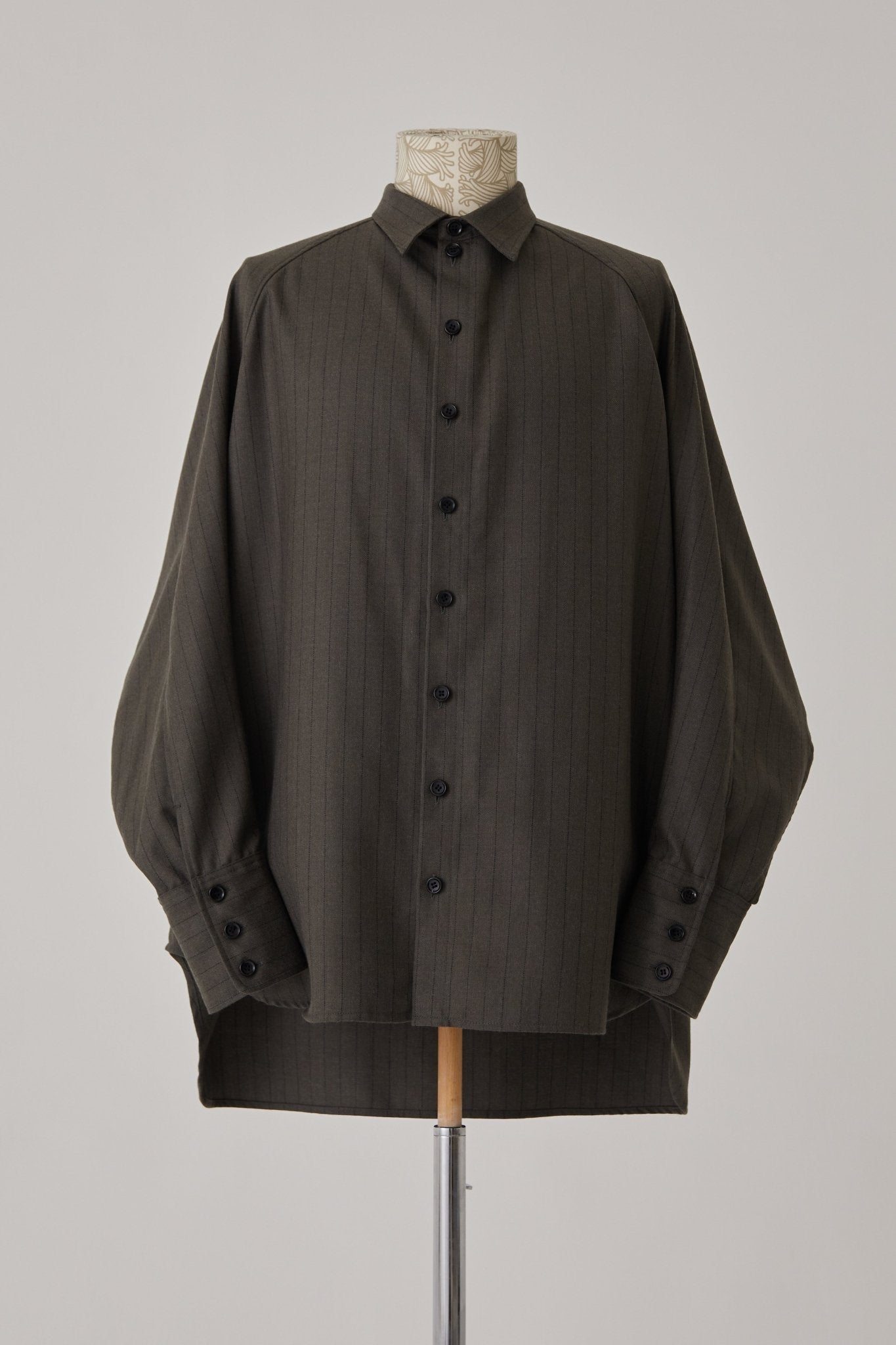 Shirt 988R- Wool100% Pin Stripe- Lilly Print- Khaki