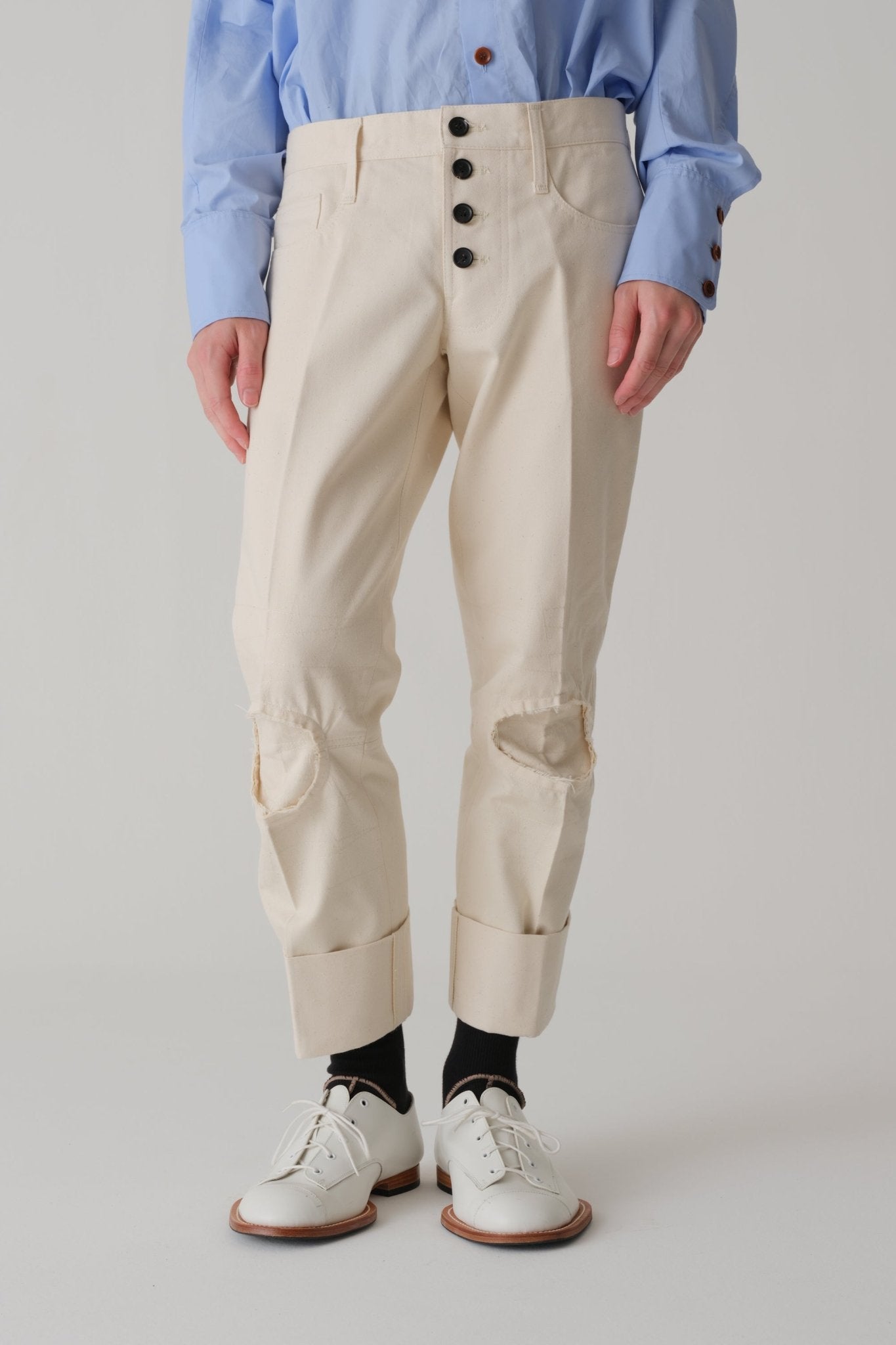 膝部分に縫い込みのカットオフディテール